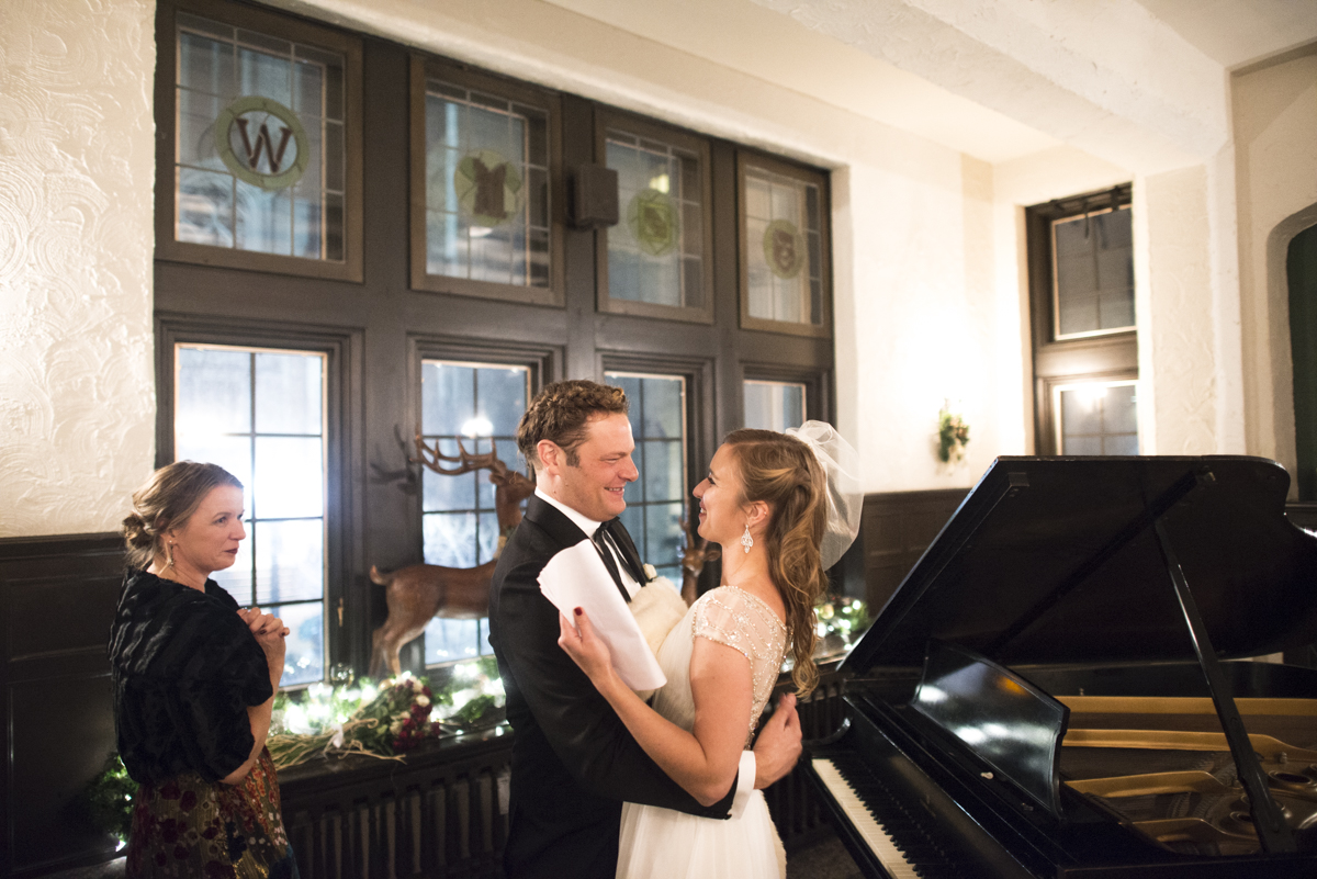 Adam and Sacha are the most vivacious, energetic couple I’ve ever met. Period. Like that lightning-in-a-bottle, hard-to-keep-up-with, instantly-suck-you-into-their-orbit type of vivacious couple. Pretty much every conversation between wedding goers wound up at the same place: both Adam and Sacha found the only other person on the planet who could keep up. The wedding weekend was held over New Year’s in Adam’s hometown of Madison, WI, and included ice skating on Lake Mendota, plenty of drained German beer boots, a twenty-mile bike “day of” groomsmen bike ride, a bonfire out at a cabin in the Wisconsin countryside, a jam-packed, fur-heavy wedding ceremony at the fourth oldest surviving synagogue in the nation, and an inspiring New Year’s Eve chorus of Auld Lang Syne at the The Weary Traveler (If you visit Madison, The Weary Traveler is a must visit). The tone and tenor of the weekend was emblematic of their shared energy and love for each other in every way.